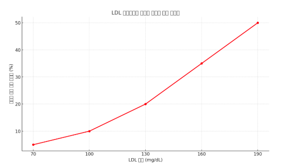 LDL 콜레스테롤은 간에서 만들어진 콜레스테롤을 말초조직으로 운반하는 역할을 하지만, **과다할 경우 혈관 벽에 쌓여 플라크(기름 찌꺼기)**를 형성합니다. 이는 동맥경화의 원인이 되며, 결국 심장마비, 뇌졸중 등 심각한 질병으로 이어질 수 있습니다.